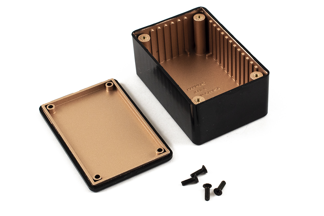 Box products are used to contain or enclose materials or equipment in a variety of contexts; plastic or metallic boxes suitable for constructing enclosures for electronic equipment such as guitar pedals, equipment cases for transporting tools or equipment, console style enclosures convenient for constructing operator interfaces, junction boxes for enclosing cable distribution points or providing for service access, key fob style enclosures for remote control or access applications, and others.