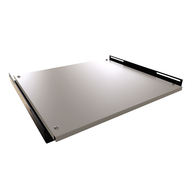 Products in the rack component family are used in conjunction with equipment mounting racks of standardized sizes, used to assemble and interconnect system subcomponents in a secure and organized fashion. Example products include equipment chassis kits, desktops, doors & covers, locking and non-locking slide-out drawers, enclosing panels, shelves, and others.