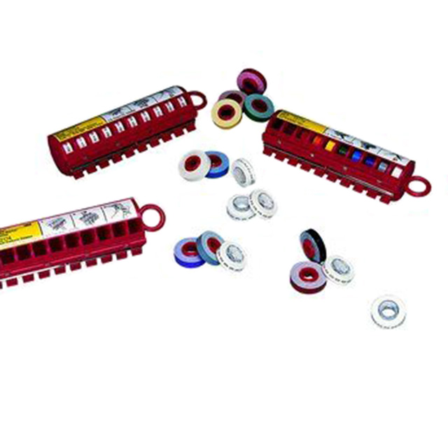 Markers are small numeric labels used for identification of wires. These devices are secured to wires and cables through a variety of means: Adhesive, Cable Tie, Clip-on, Slip-on, Perforated, Cards, Heat Shrinkable, Push-on, Slip-in, Miniature, and Tape with Dispenser. Sizes range from 0.08” to 2.13” Dia., 0.12” W x 0.12” L to 14.00” W x 23.00” L.