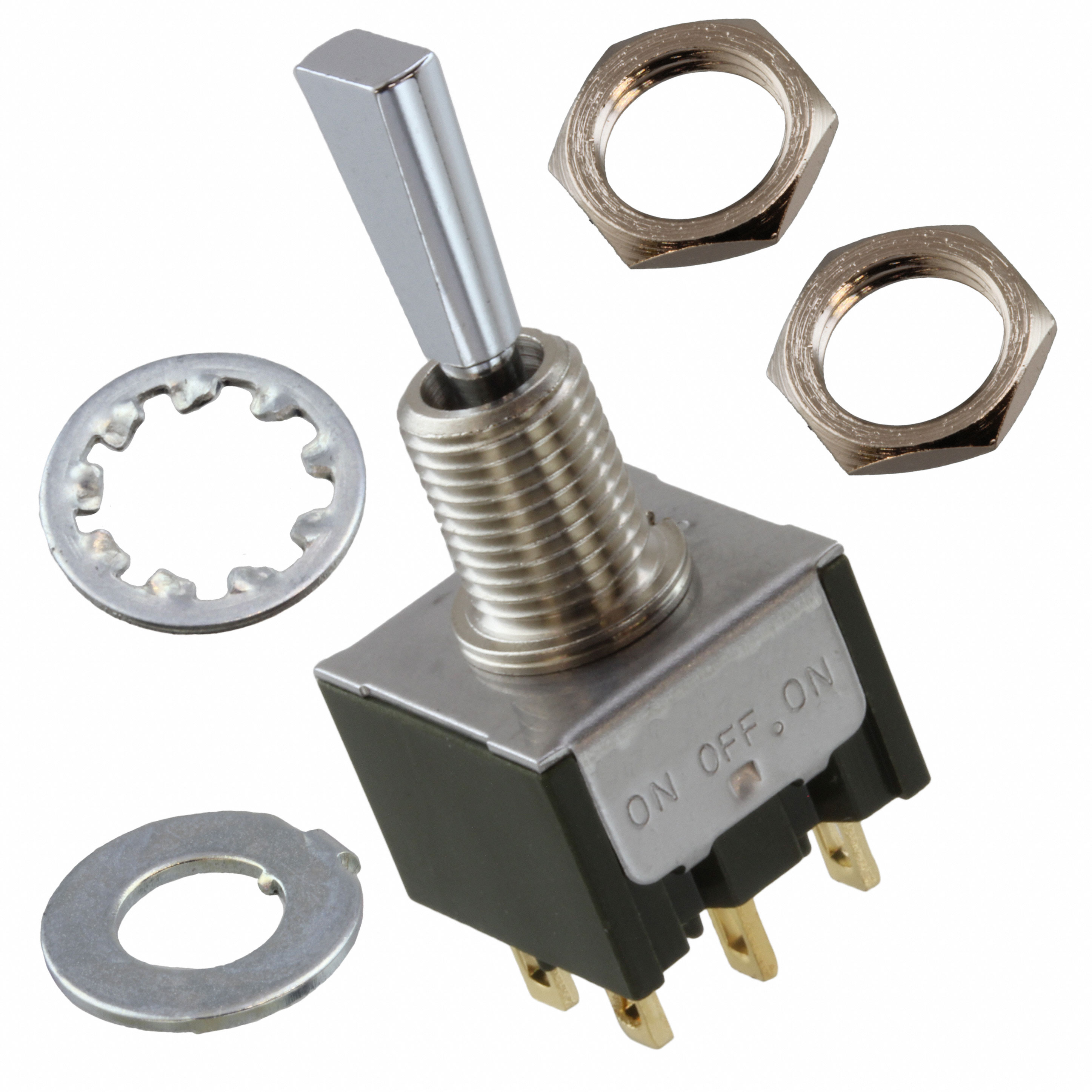 NKK Switches | SWITCH TOGGLE SP3T 6A 125V | 50 | $9.60 | |